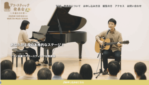 こちらはカスタマイズプランにて、2025年の音楽教室の発表会の特設サイトを作成いたしました!